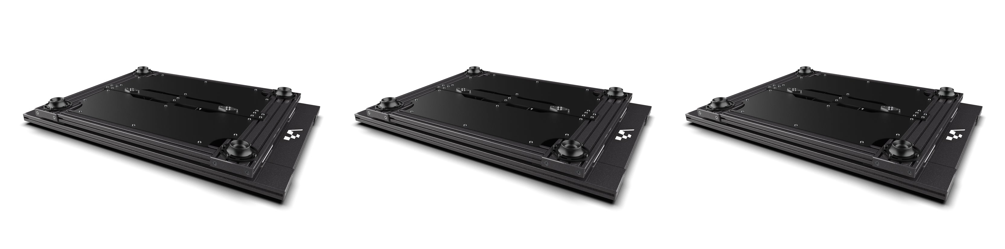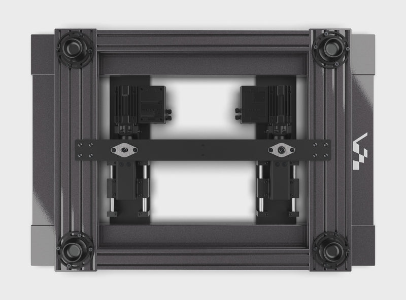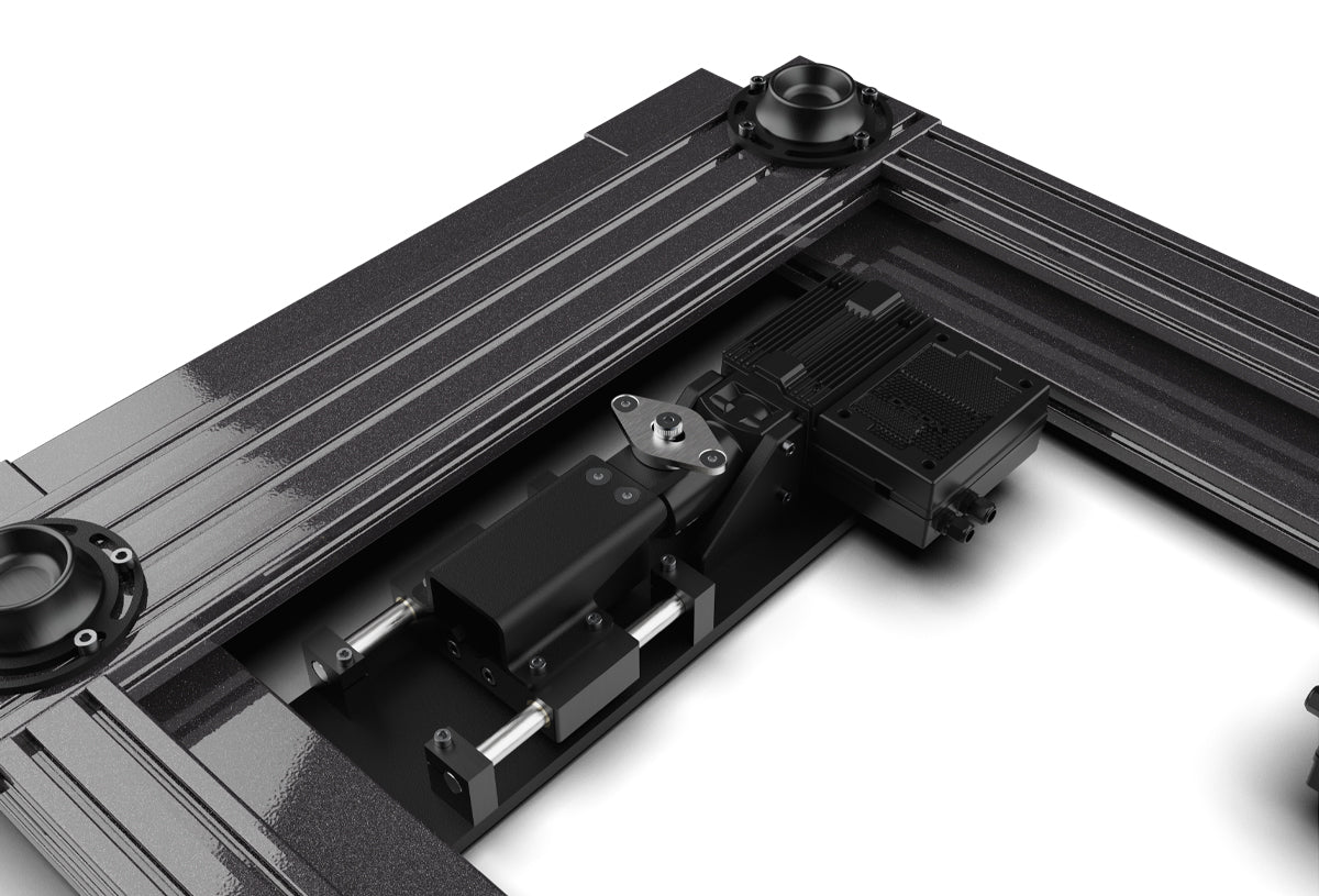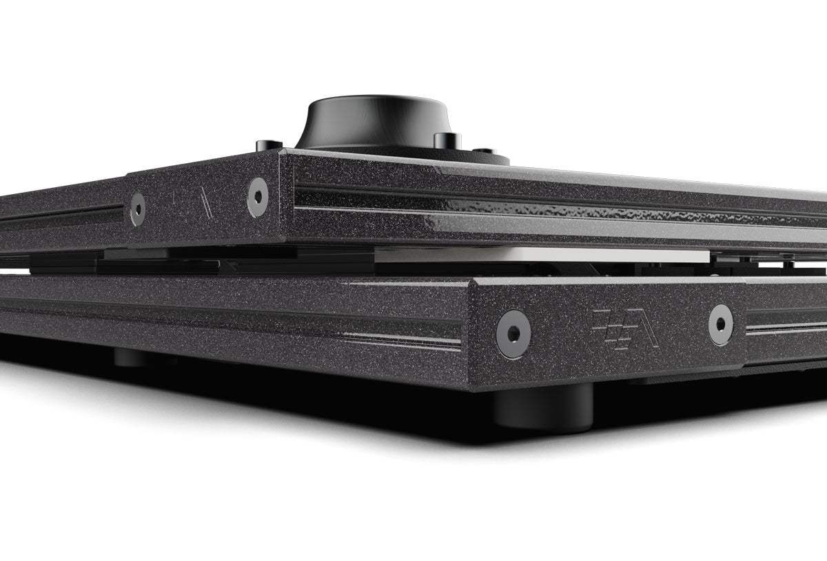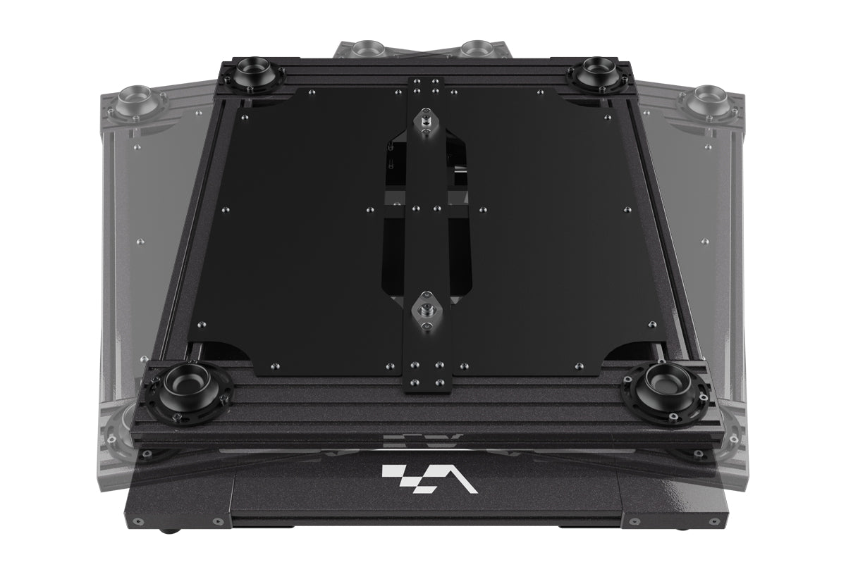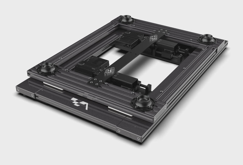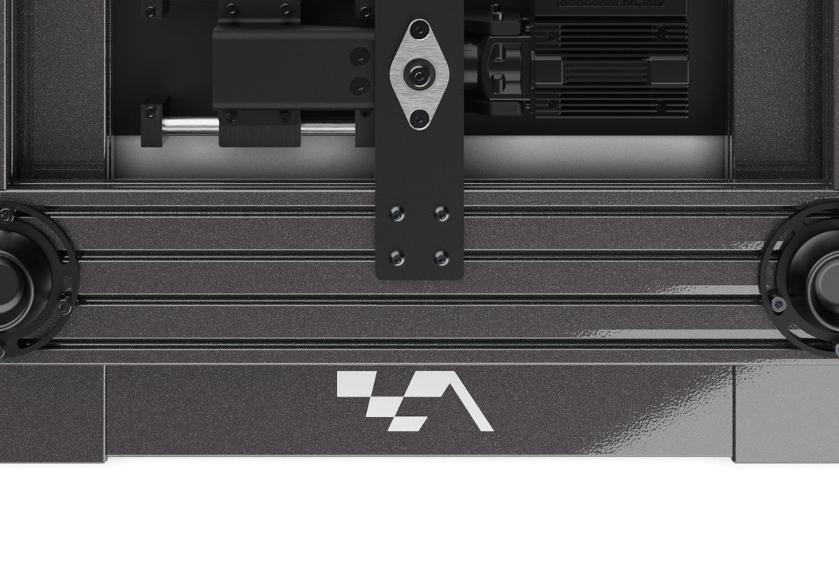 The platform is built on a heavy-duty aluminum profile base offering unmatched levels of rigidity and stability. It features a proprietary mechanism designed for 2 degrees of freedom (Yaw/Traction Loss and Sway). Available in our ultra-premium Infinite Black powder coat finish, the system provides a sleek, high-end aesthetic that integrates seamlessly with any professional simulator setup.